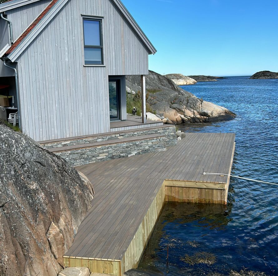 Vi bygger alt fra terrasser og verandaer til balkonger og altaner. Skreddersydde uteområder som blir husets naturlige samlingspunkt. - Brygger og kaier